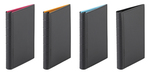 システム手帳表紙は、革装丁の古書をイメージしたアンティークでシックな黒の外面と、カラフルでモダンな中面を組み合わせた斬新なデザイン。表紙は縫製仕上げで耐久性があり、裏面にはブランドロゴを空押しして高級感を高めました。背表紙は発泡PVC製のやわらかい素材を使用しているので、表紙を折り返してコンパクトに使うことができます。また綴じ具下部のボタンを押すと綴じ具が開き、閉じるときはリングをつまむだけの簡単開閉。中のリーフは使う人がお好みで選んで自分仕様にカスタマイズできるように表紙のみで販売致します。自分仕様を楽しむ20代から40代のビジネスパーソンを中心に幅広い利用を見込みます。