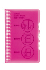 さらに「DIARY」「ADDRESS」「NOTE」の3つのインデックスを付属。この3つのインデックスのうち、「DIARY」のみ見出し部分を長くして過去のリーフを挟み込めるようにし、インデックスを差し替えなくても使用中の「月」がすぐに開けられる仕様になっています。使いやすい機能が加わって新たにリニューアルした「ダイアリーノート」は、不透明の黒と、透明の赤、黄、青の4色で展開いたします。