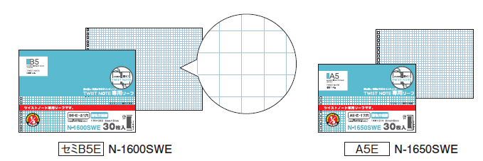 | N-1600SWE | セミB5E・21穴 | 1組(30枚)230円 | 薄色5mm方眼罫 | 179×252 | 25/100組 |