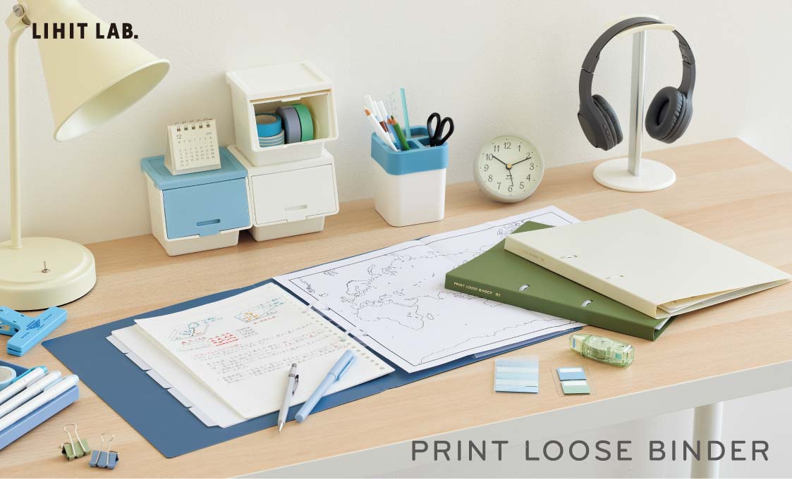 2023年2月に発売された「プリントルーズバインダー」は、機能性と利便性を兼ね備えた薄型2穴バインダーとして、多くのお客様からご好評をいただいております。この度、さらなる拡販を目指し、学生はもちろん、ビジネスシーンなど大人まで、幅広いユーザーが手に取りやすいクールなカラーを追加して、2月下旬より発売します。