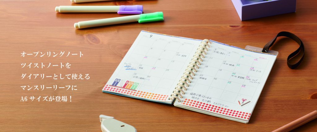 自分好みにカスタマイズできる『オープンリングノート』に新ラインナップ マンスリーリーフA6サイズ登場でダイアリーとしても使える!