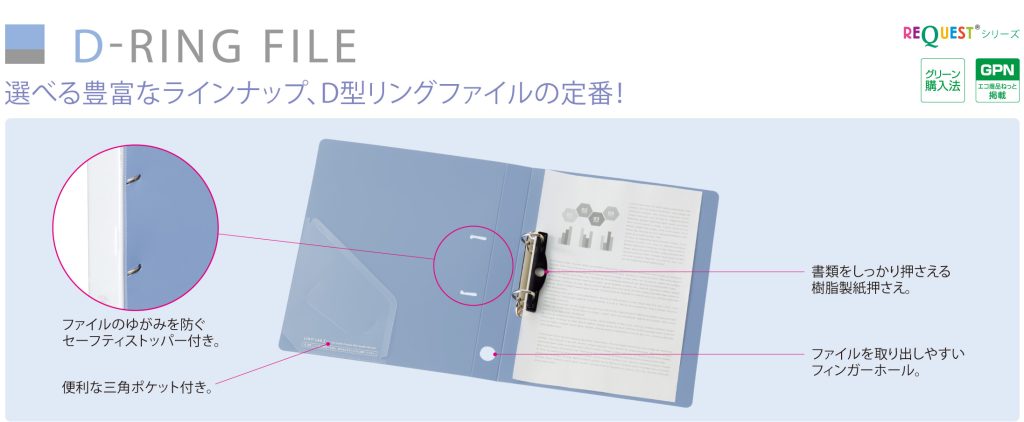 ラインナップ豊富なREQUESTシリーズにさらなる色展開 クリヤーブック<ポケット交換タイプ>とD型リングファイルの新色「水色」を発売