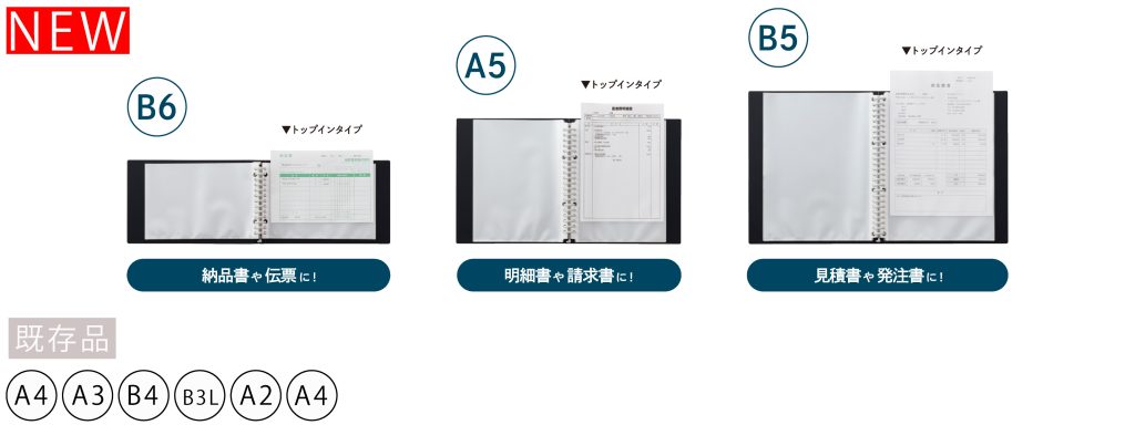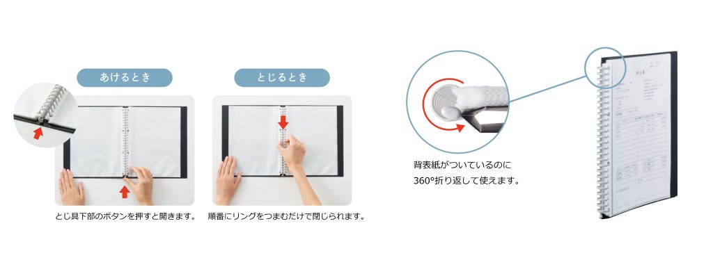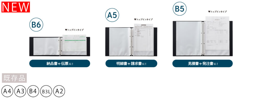 納品書や伝票 幅広い書類サイズに対応 360°表紙が折り返せるクリヤーブック 新ラインナップ発売