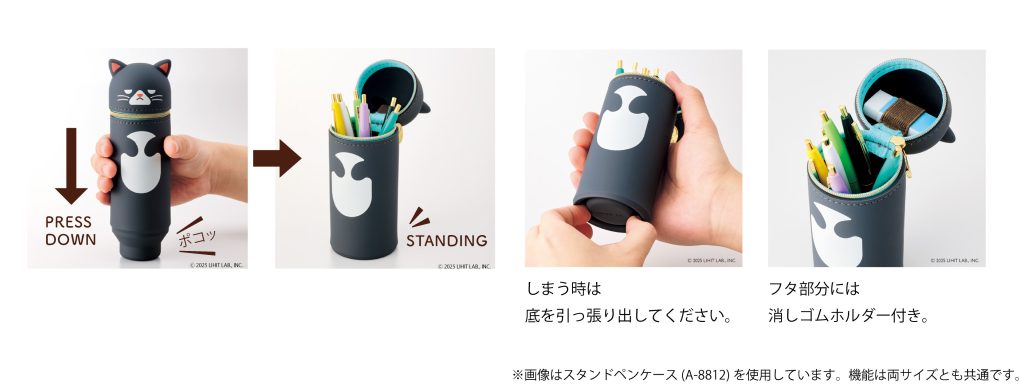 | 上から押すだけでペンスタンドになるプニラボを代表するペンケース |