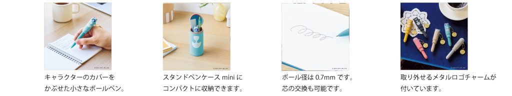 シリーズ設定は、「株式会社LIHIT LAB.」の前身である「リヒト産業株式会社」が設立間もない1950年代。昭和レトロの空気が漂う小さな喫茶店「喫茶プ二ラボ」で、ちょっと無愛想なマスター「ブチ」をはじめとする日本特有の可愛らしい動物キャラクター達がのんびり思い思いの時間を過ごします。そんな世界観やキャラクター個性をモチーフにした「スタンドペンケース」や「スタンドペンケースmini」、「ミニポーチ」、「ミニボールペン」は、日常使いに便利なアイテムで、使うたびに個性豊かなキャラクター達の表情に癒しを感じていただけるラインナップです。 |