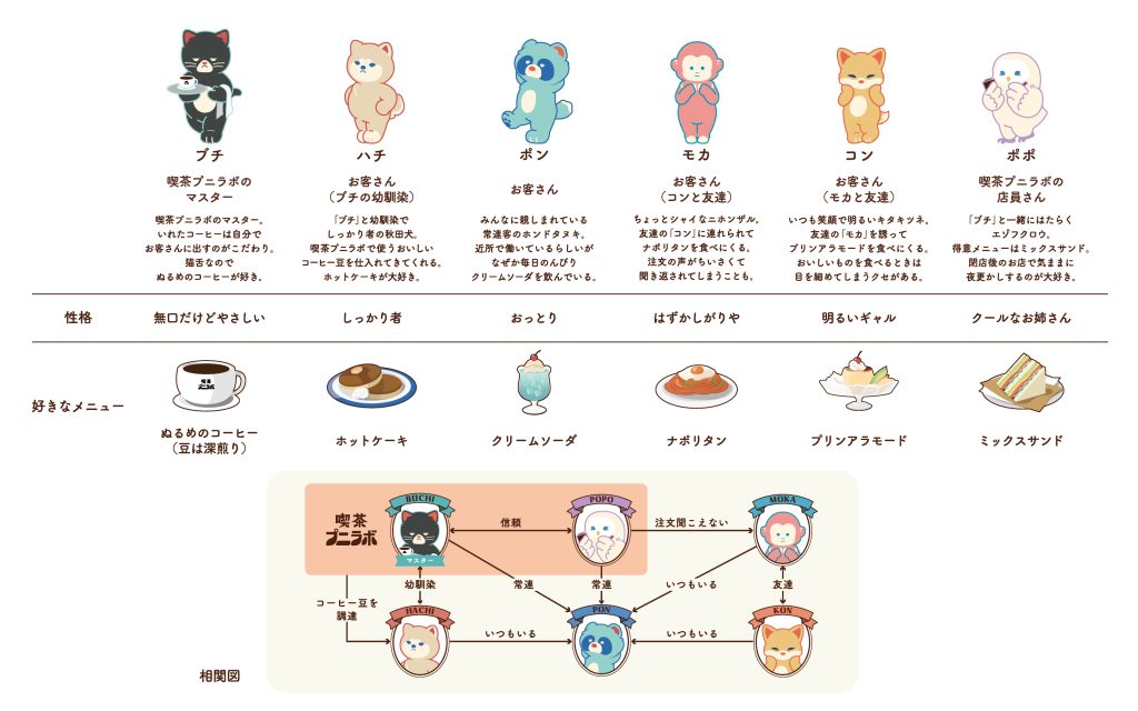 | PuniLabo(プニラボ)シリーズから、『喫茶プニラボ』シリーズを発売いたします(4品番24SKU)。『喫茶プニラボ』シリーズは、従来のシリーズと異なり、昭和レトロな純喫茶を舞台にした世界観や、キャラクターに性格や好きな食べ物など個性を設定しています。世界観や個性の設定により、キャラクターへの愛着を深めていただけるシリーズです。 |