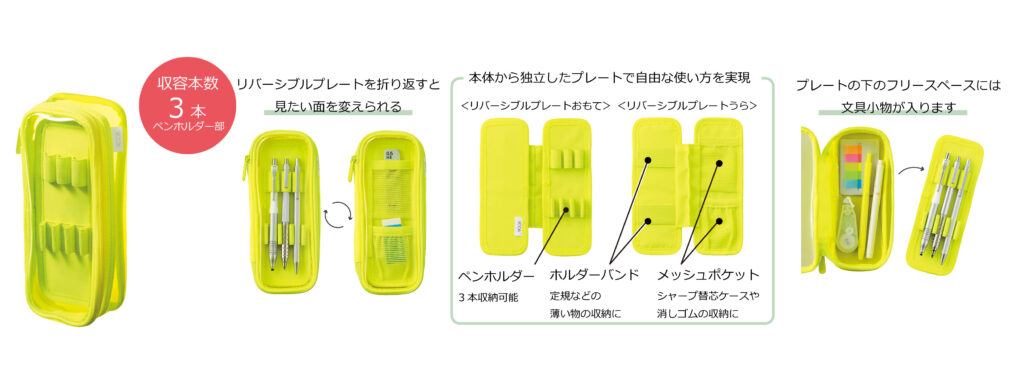 | A-3810 | リバーシブルクリヤーペンケース ライト | 1,980円(1,800円) | 3本 |
