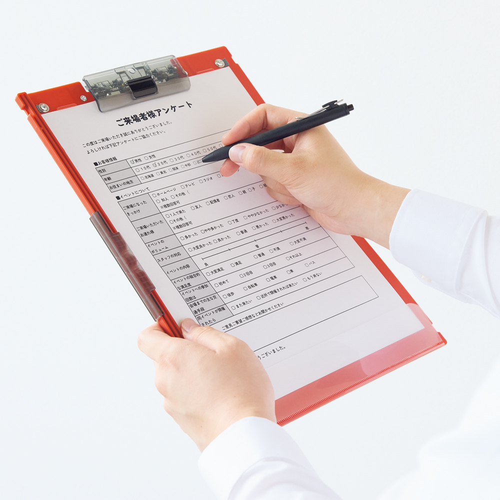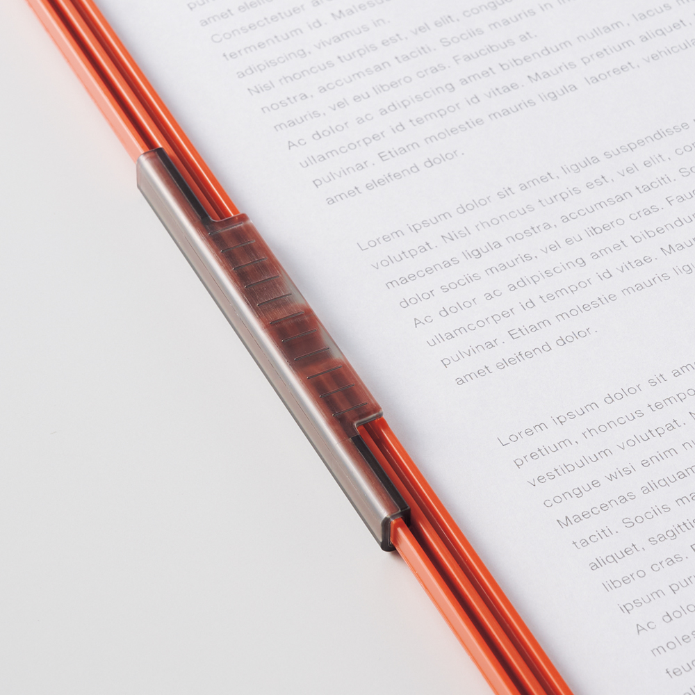 ロック機能付きクリップで、クリップを開けたまま書類をセットすることができます。