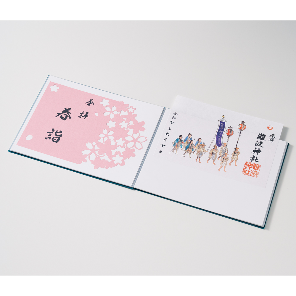 中台紙を挟んで、おもて・うら両面に収納できるジャバラポケットタイプの御朱印帳です。