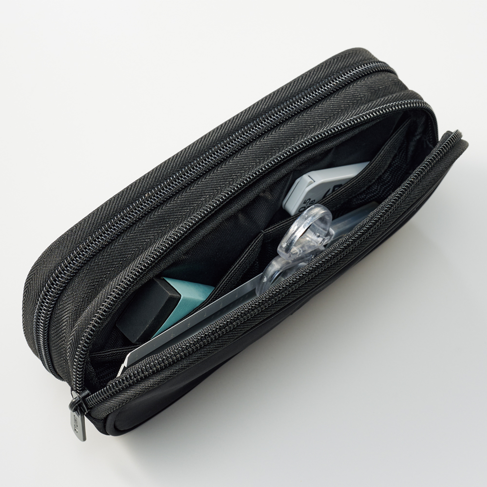 ポーチ型のファスナーポケットの内側にメッシュポケットが付いており、小物を仕分けて収納ができます。