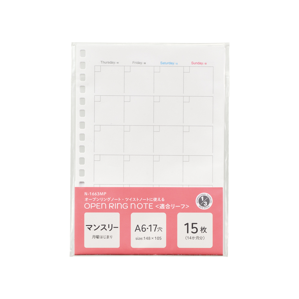 オープンリングノート、ツイストノートに入れて、ダイアリーとしてご使用いただけます。