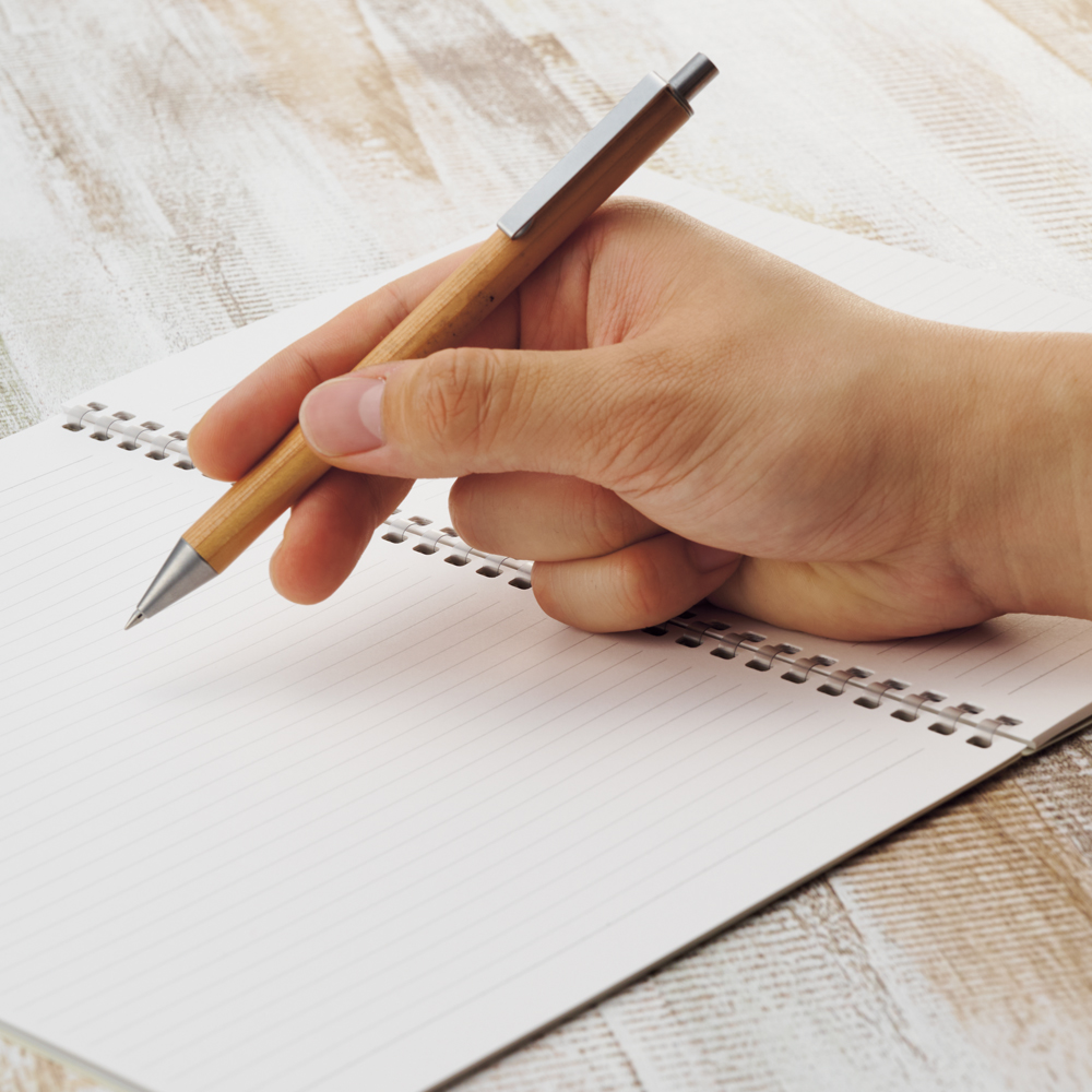 やわらかくて薄いリングは筆記時に手に当たっても気になりにくく、かさばらないので持ち運びに便利です。