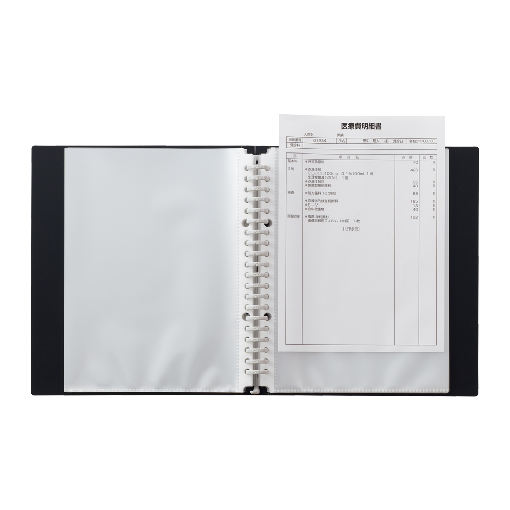 | 材質 | 表紙/ポリプロピレン(生地厚0.75mm)、ポケット/ポリプロピレン(生地厚0.06mm)、とじ具/ポリカーボネート・ポリプロピレン |
