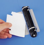 1つのリングを片手でひねるだけで綴じ具が開き、閉じる時はリングをつまむだけの簡単操作で開閉できます。金具のベースカバーは黒のABS樹脂製なので軽くてシックなイメージに。